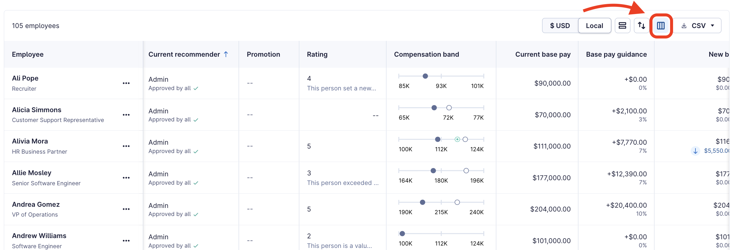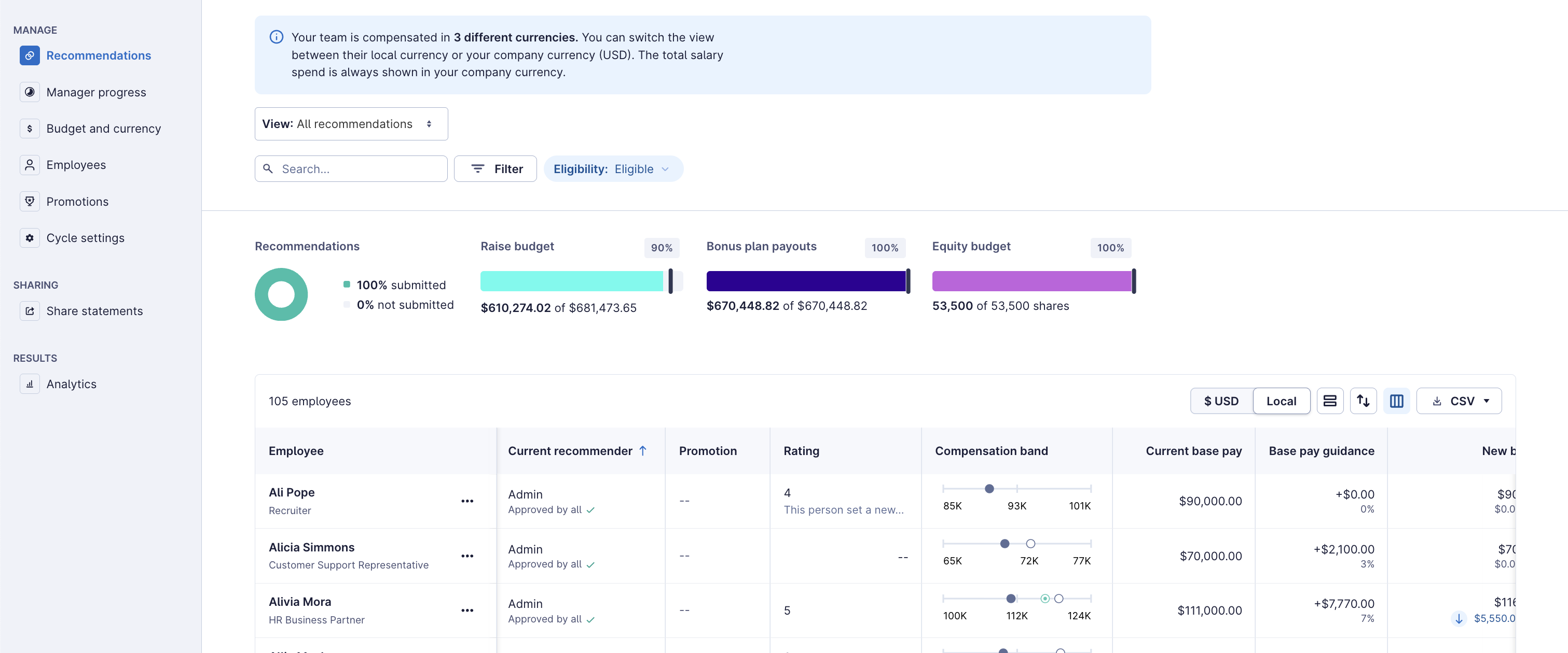 Admins can view summaries of the recommendation budget allocation during the compensation cycle.